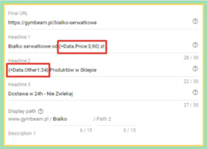Merging product feed with Search Ads. We have linked the product feed with Google Ads, not only for Google Shopping campaigns but also for text ads. Thanks to this, using variables, we provide up-to-date data on price, availability, and other product attributes from the store four times a day.