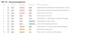 With such a large amount of data and after extensive analysis, numerous recommendations arise. However, to implement them effectively, it is necessary to assess priorities and create an implementation plan. This plan allows us to focus on the recommendations that can bring the highest revenue growth at the lowest cost.