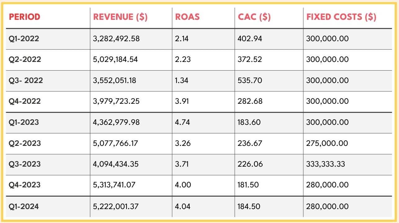 - While revenue and ROAS remained important, our primary focus shifted to meeting the CAC goal, laying the foundation for sustainable long-term growth.