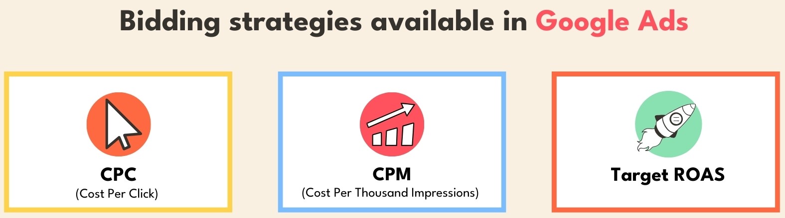 There are several bidding strategies available in Google Ads: