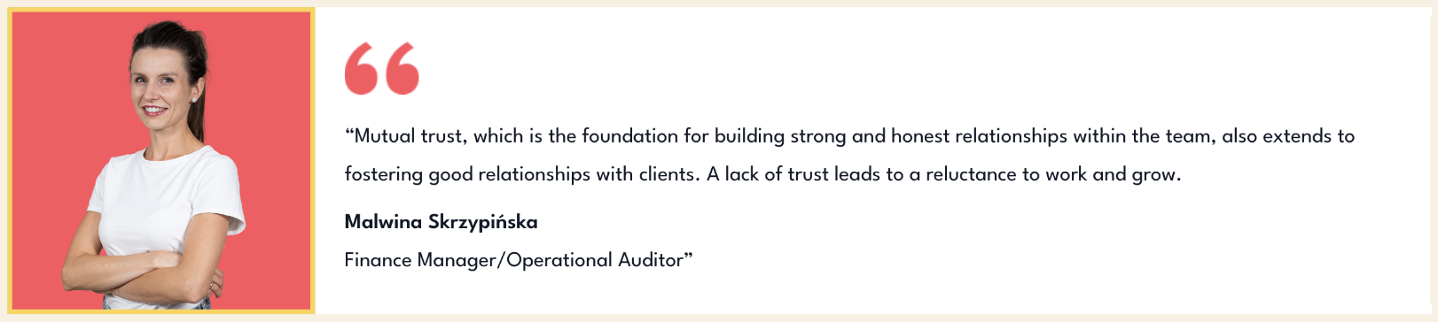 You cannot improve yourself without the support of others, who share honest feedback. Honest feedback and an empathetic approach are essential for healthy communication and creating a relaxed and friendly atmosphere. We believe that all feedback, even negative one, is important for building strong relationships in a team where everyone knows where they stand.